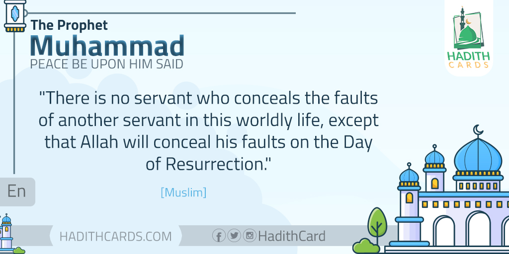 There is no servant who conceals the faults of another servant in this worldly life, except that Allah will conceal his faults on the Day of Resurrection. [Muslim]