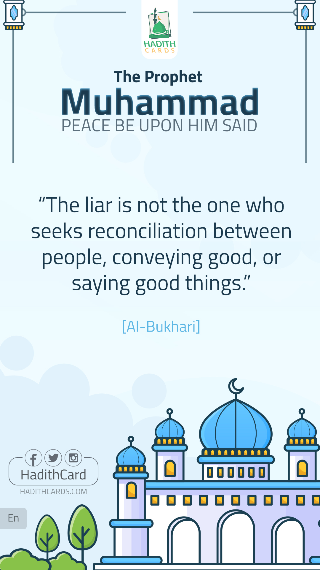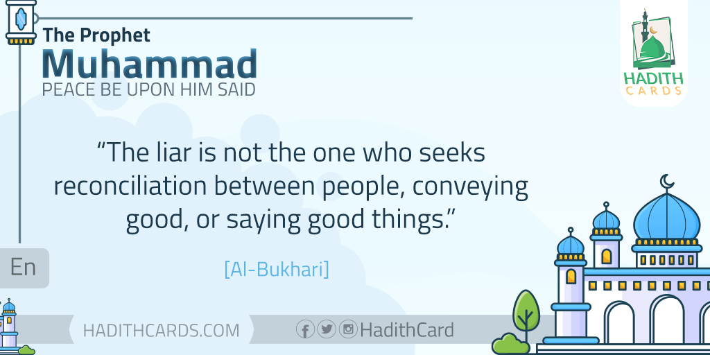 The liar is not the one who seeks reconciliation between people, conveying good, or saying good things.[Al-Bukhari]