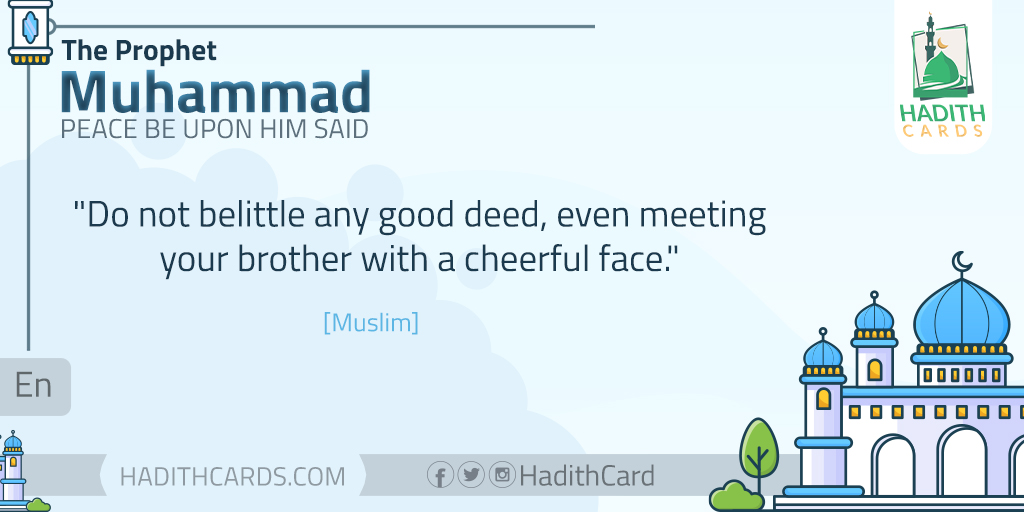 Do not belittle any good deed, even meeting your brother with a cheerful face. [Muslim]