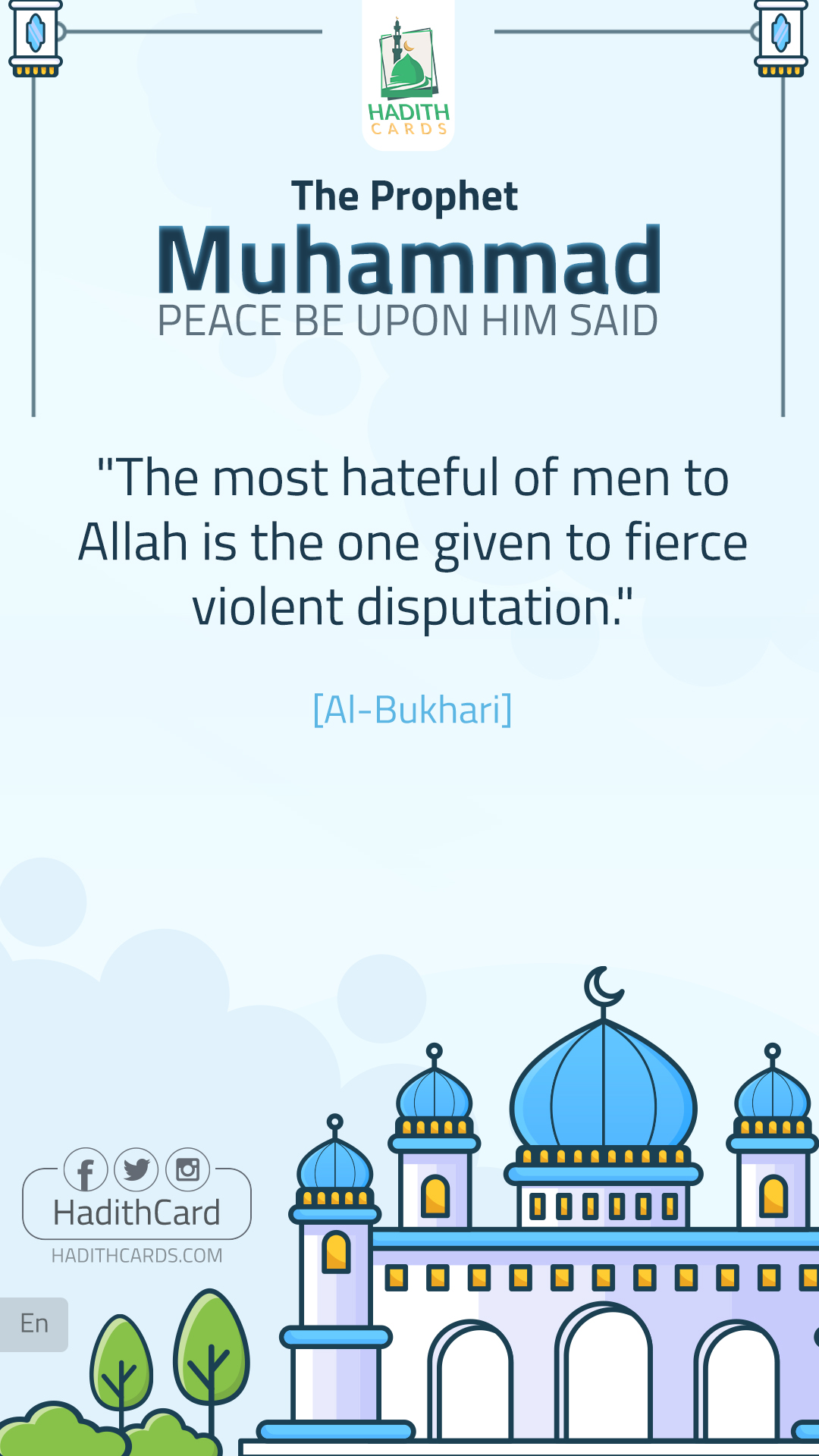 The most hateful of men to Allah is the one given to fierce violent disputation. [Al-Bukhari]