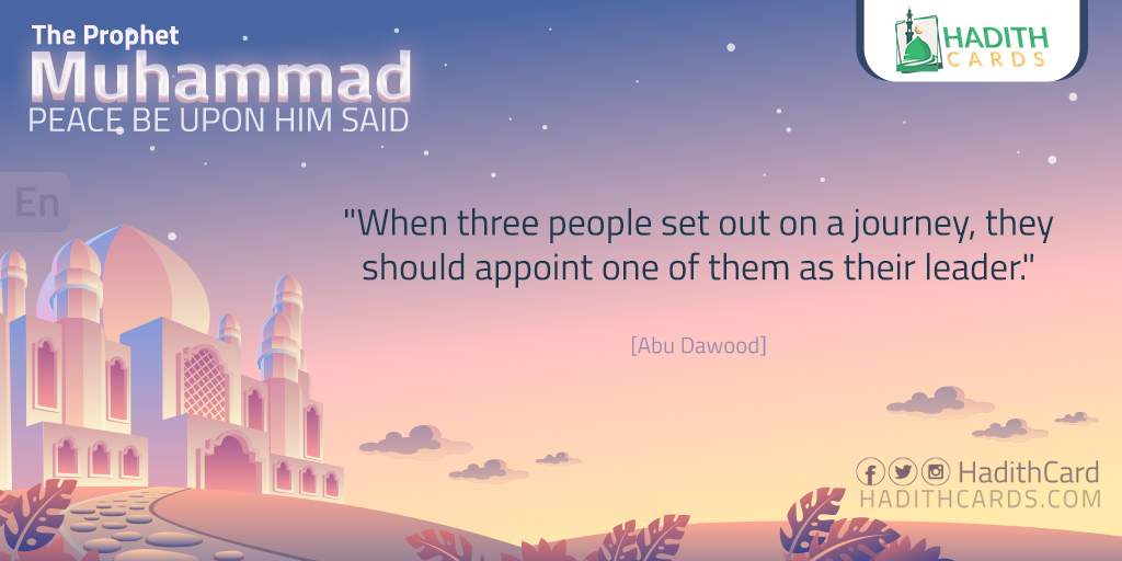 When three people set out on a journey, they should appoint one of them as their leader. [Abu Dawood]