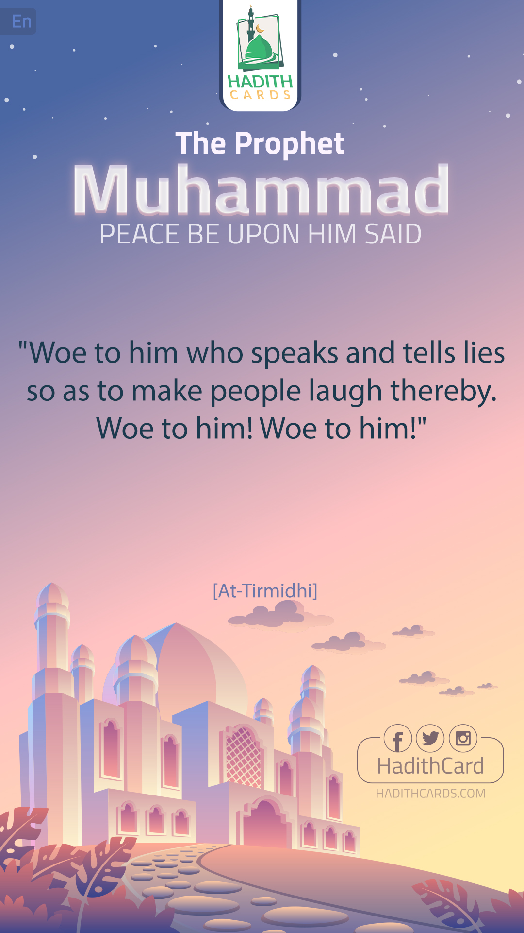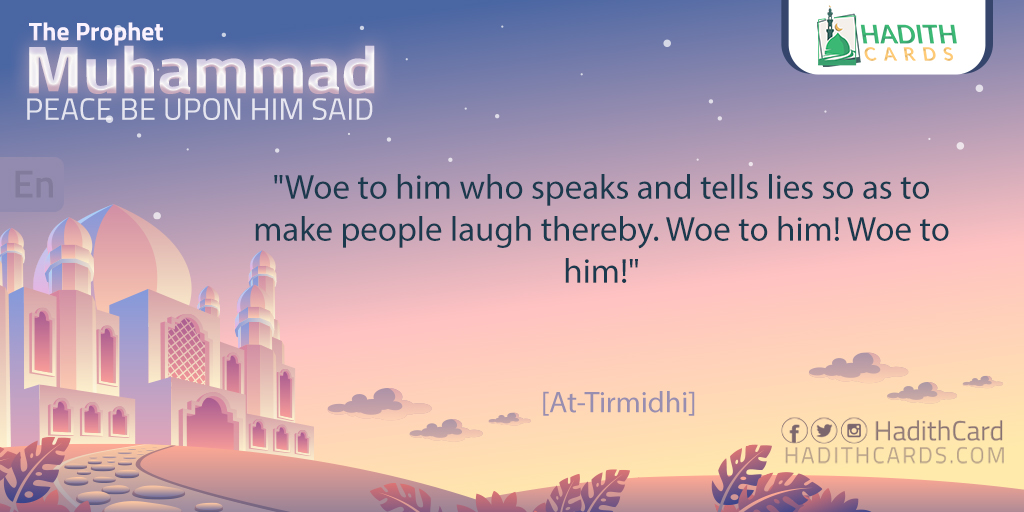 Woe to him who speaks and tells lies so as to make people laugh thereby. Woe to him! Woe to him! [At-Tirmidhi]