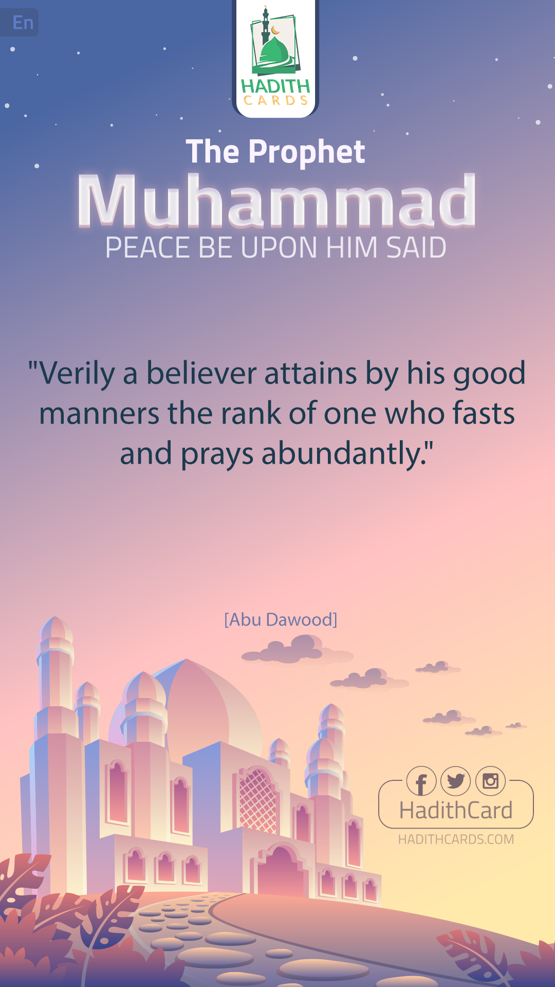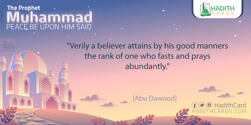 Verily a believer attains by his good manners the rank of one who fasts and prays abundantly [Abu Dawood]