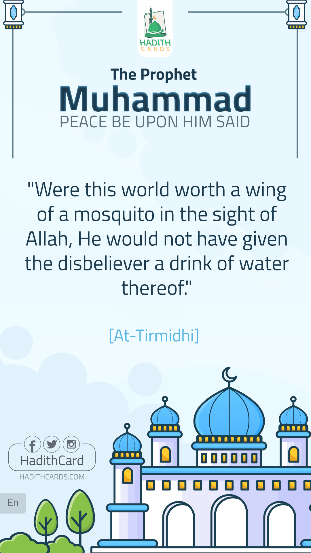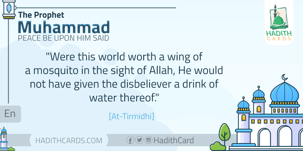 Were this world worth a wing of a mosquito in the sight of Allah, He would not have given the disbeliever a drink of water thereof [At-Tirmidhi]