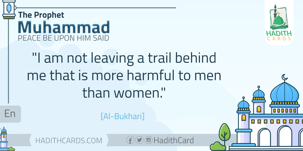 I am not leaving a trail behind me that is more harmful to men than women. [Al-Bukhari]