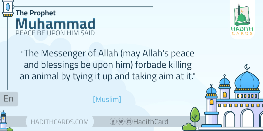 «نَهى رسول الله -صلى الله عليه وسلم- أنْ يُقتل شيء مِن الدَّواب صَبْرا» (مسلم)