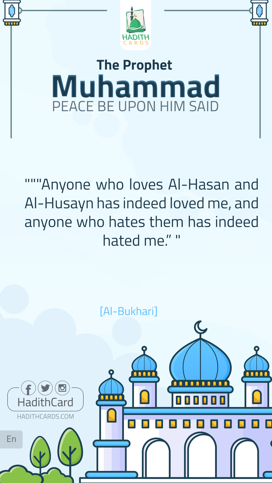 Anyone who loves Al-Hasan and Al-Husayn has indeed loved me, and anyone who hates them has indeed hated me