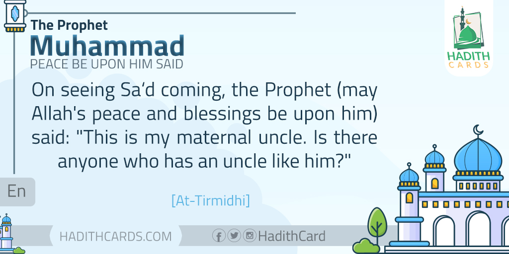 On seeing Sa‘d coming, the Prophet (may Allah's peace and blessings be upon him) said: "This is my maternal uncle. Is there anyone who has an uncle like him? [At-Tirmidhi]