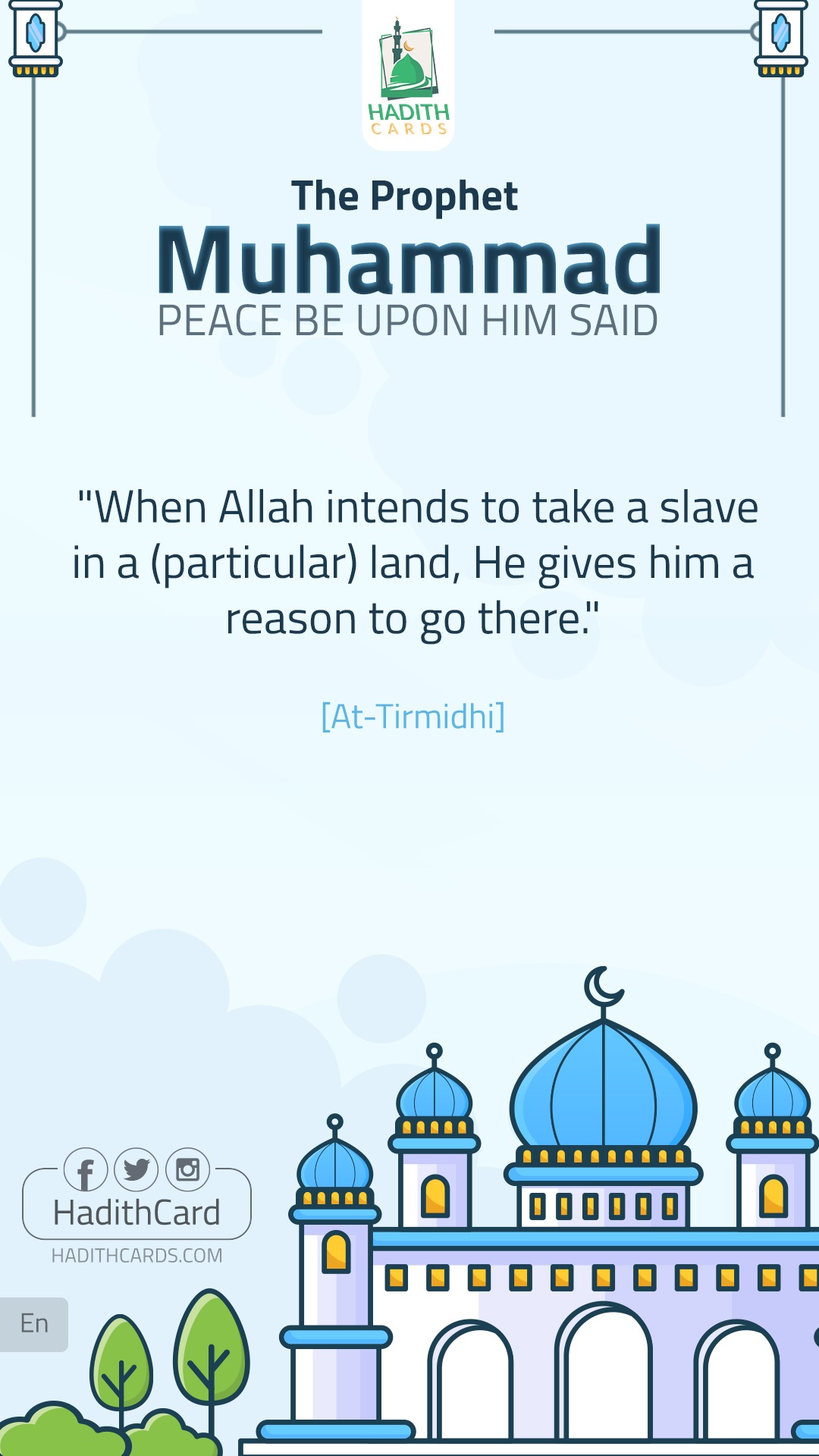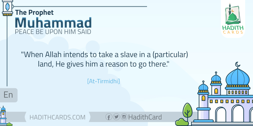 When Allah intends to take a slave in a (particular) land, He gives him a reason to go there. [At-Tirmidhi]