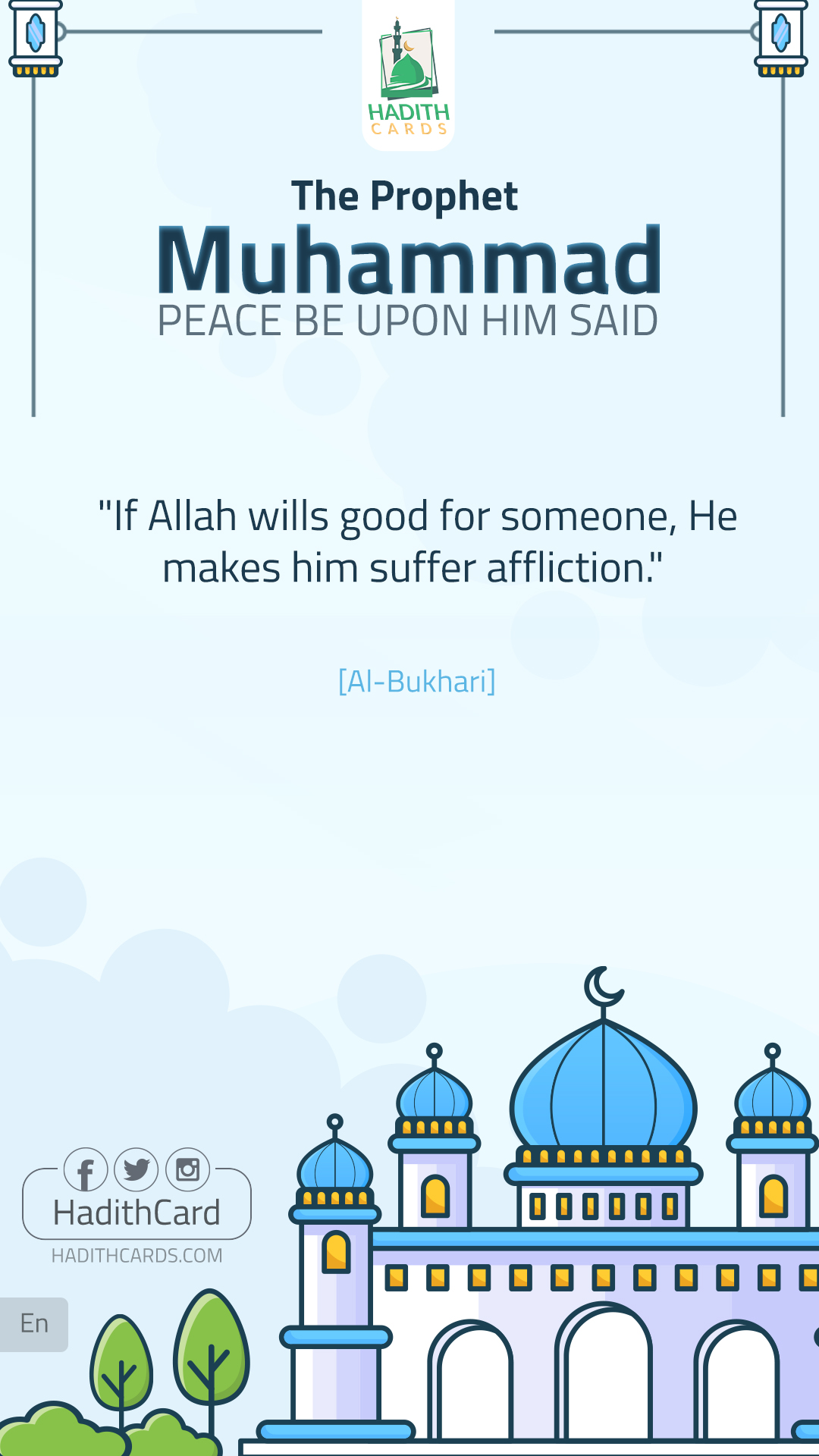 If Allah wills good for someone, He makes him suffer affliction.[Al-Bukhari]