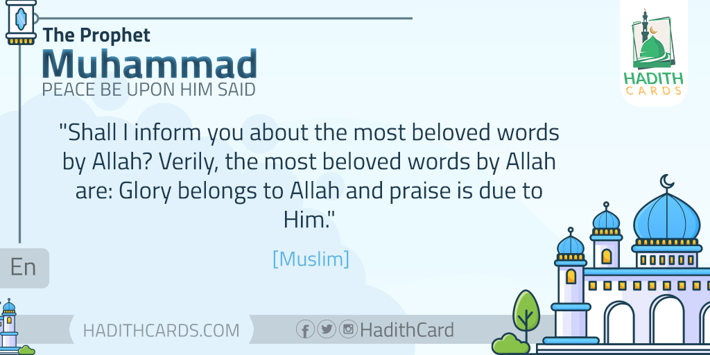 Shall I inform you about the most beloved words by Allah? Verily, the most beloved words by Allah are: Glory belongs to Allah and praise is due to Him. [Muslim]