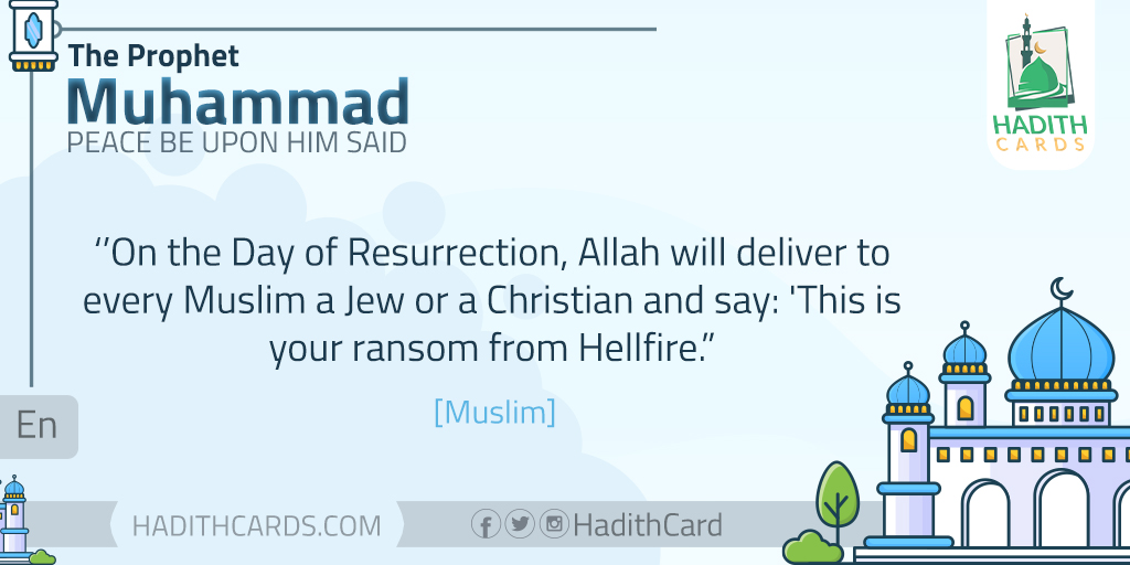 On the Day of Resurrection, Allah will deliver to every Muslim a Jew or a Christian and say: 'This is your ransom from Hellfire. [Muslim]