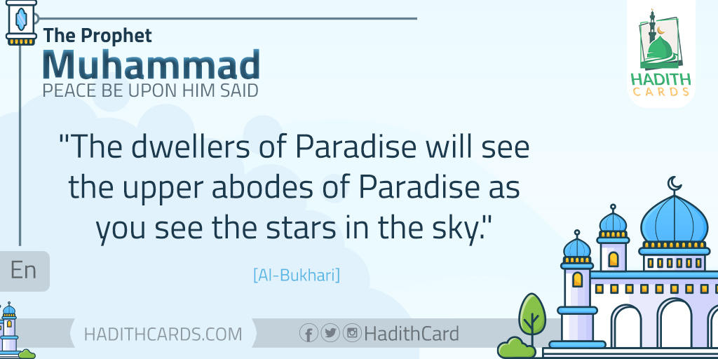 The dwellers of Paradise will see the upper abodes of Paradise as you see the stars in the sky. [Al-Bukhari]