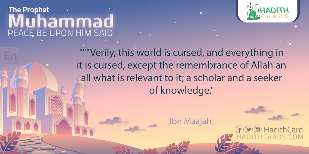"«ألا إن الدنيا مَلعُونة، مَلعُونٌ ما فيها، إلا ذكرَ الله تعالى، وما وَالاهُ، وعالما ومُتَعَلِّمَا».