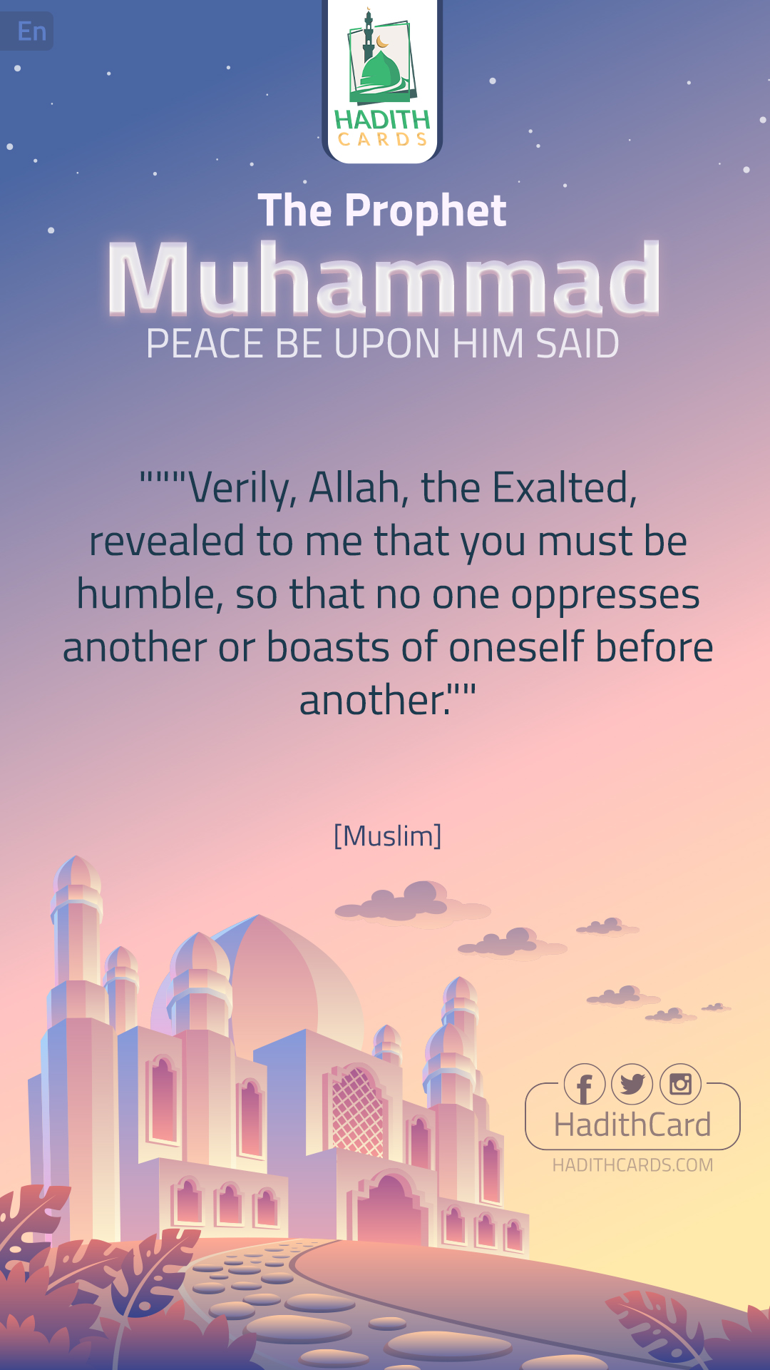 """«إِنَّ اللَّهَ تَعَالَى أَوْحَى إلَيَّ: أَنْ تَوَاضَعُوا، حَتَّى لَا يَبْغِيَ أَحَدٌ عَلَى أَحَدٍ، وَلَا يَفْخَرَ أَحَدٌ عَلَى أَحَدٍ». [رواه مسلم.]""
