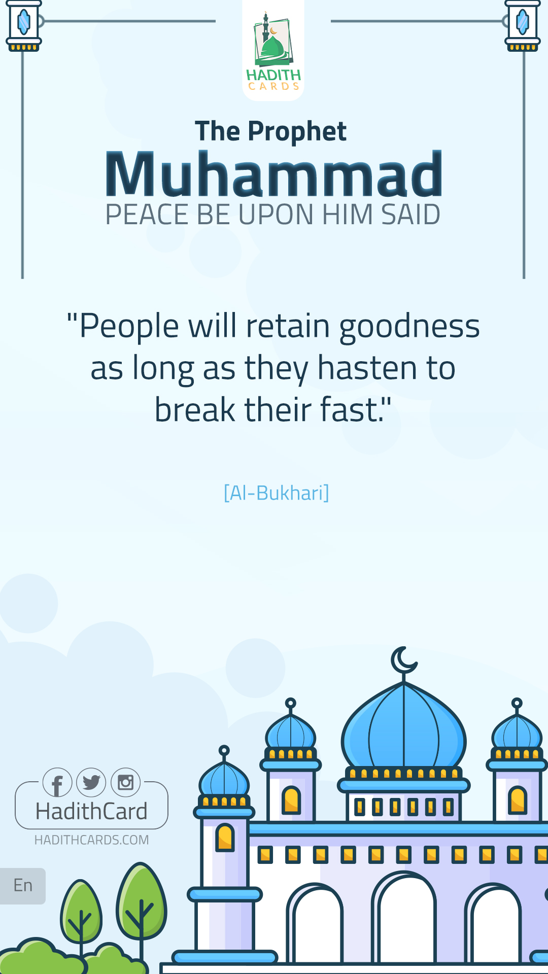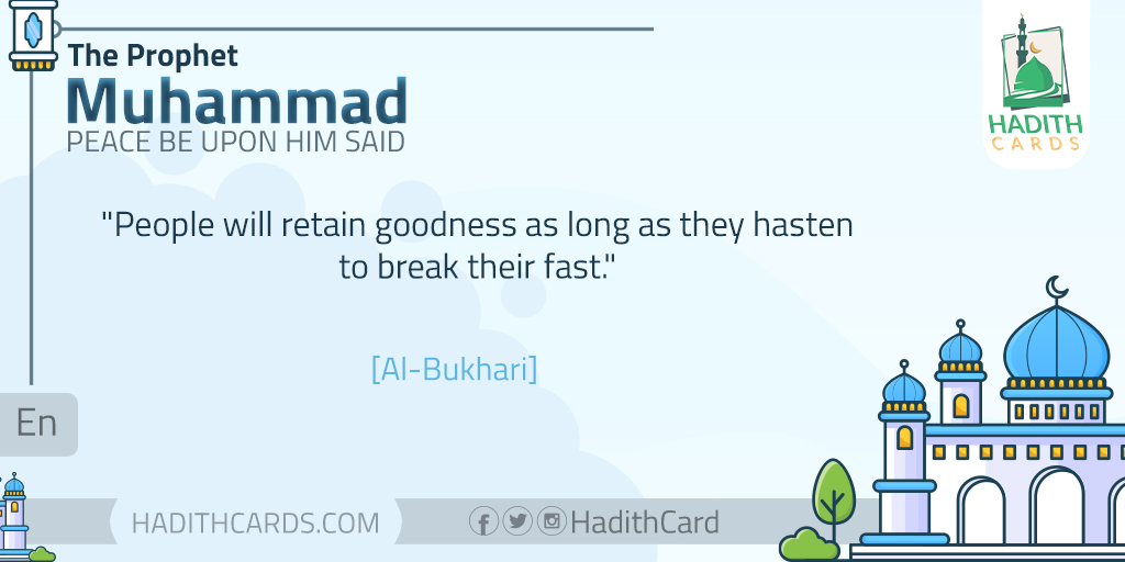 People will retain goodness as long as they hasten to break their fast. [Al-Bukhari]
