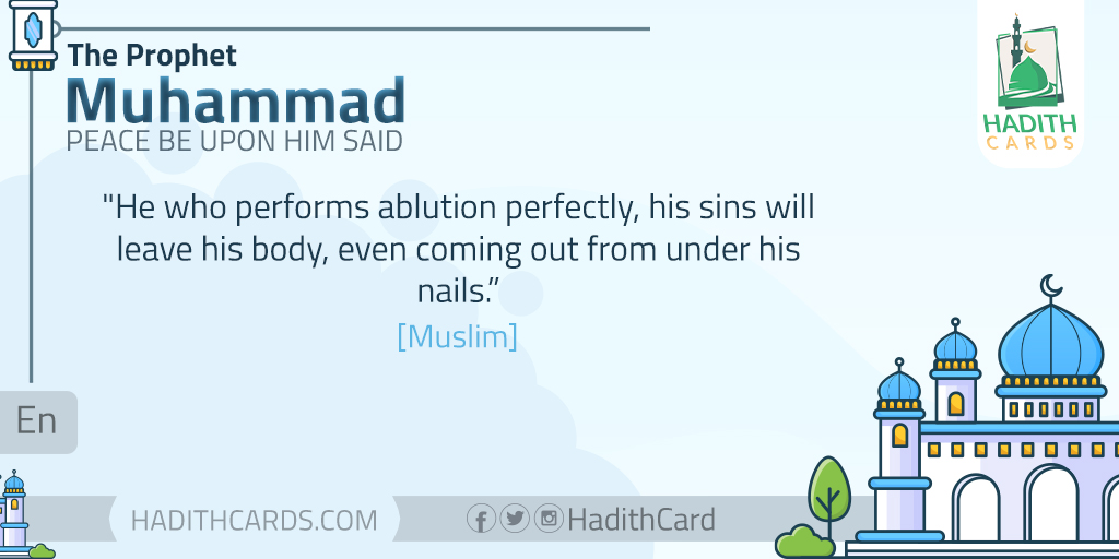 He who performs ablution perfectly, his sins will leave his body, even coming out from under his nails. [Muslim]
