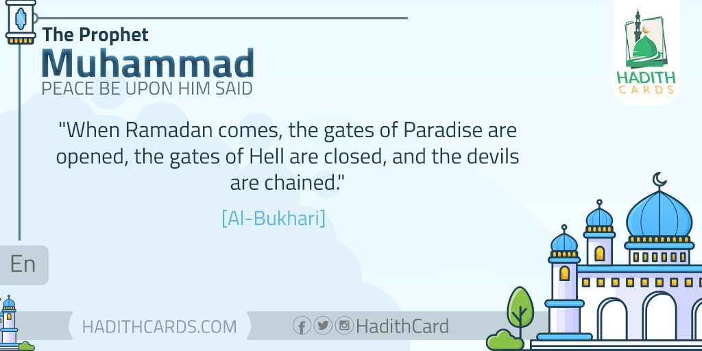 When Ramadan comes, the gates of Paradise are opened, the gates of Hell are closed, and the devils are chained. [Al-Bukhari]