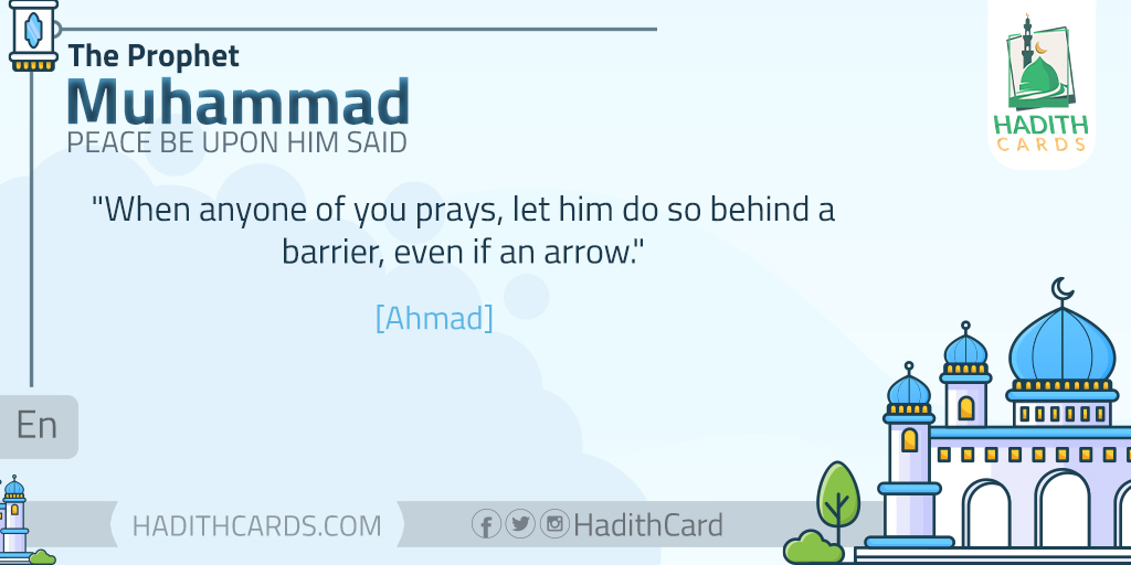When anyone of you prays, let him do so behind a barrier, even if an arrow. [Ahmad]