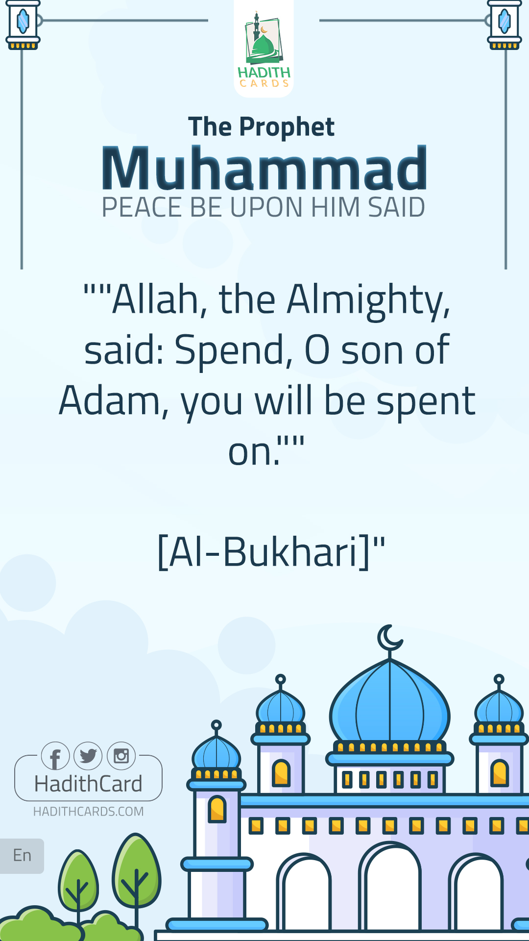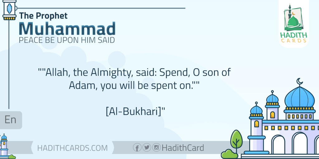 Allah, the Almighty, said: Spend, O son of Adam, you will be spent on. [Al-Bukhari]