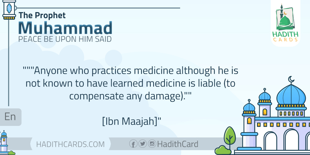 Anyone who practices medicine although he is not known to have learned medicine is liable (to compensate any damage) [Ibn Maajah]