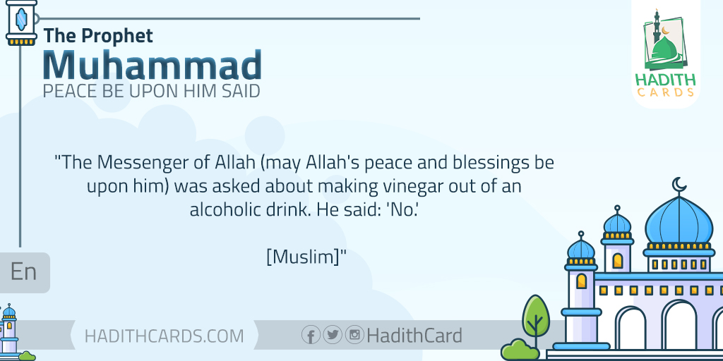 The Messenger of Allah (may Allah's peace and blessings be upon him) was asked about making vinegar out of an alcoholic drink. He said: 'No.' [Muslim]