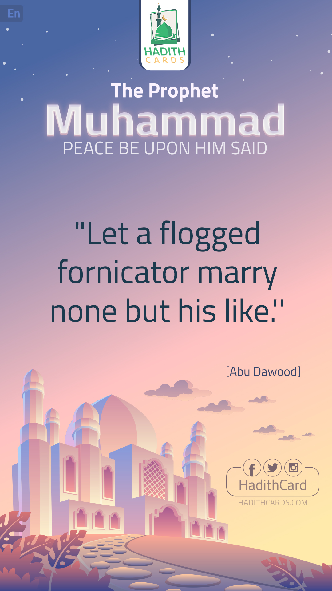 Let a flogged fornicator marry none but his like. [Abu Dawood]