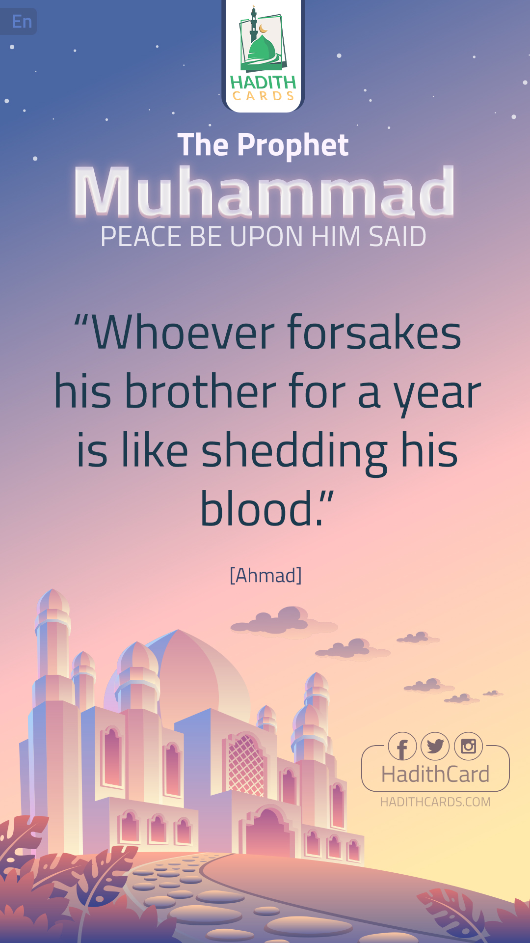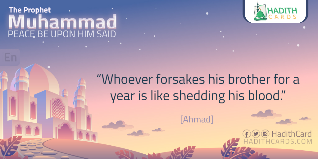 Whoever forsakes his brother for a year is like shedding his blood.[Ahmad]