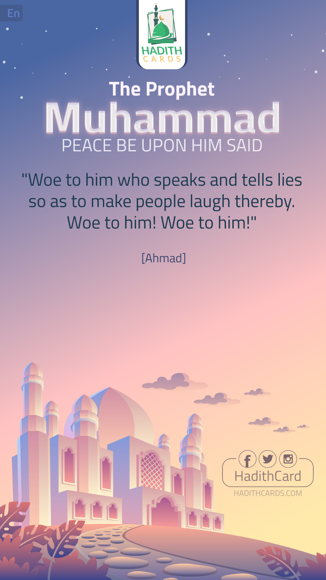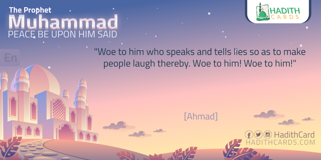 Woe to him who speaks and tells lies so as to make people laugh thereby. Woe to him! Woe to him![Ahmad]