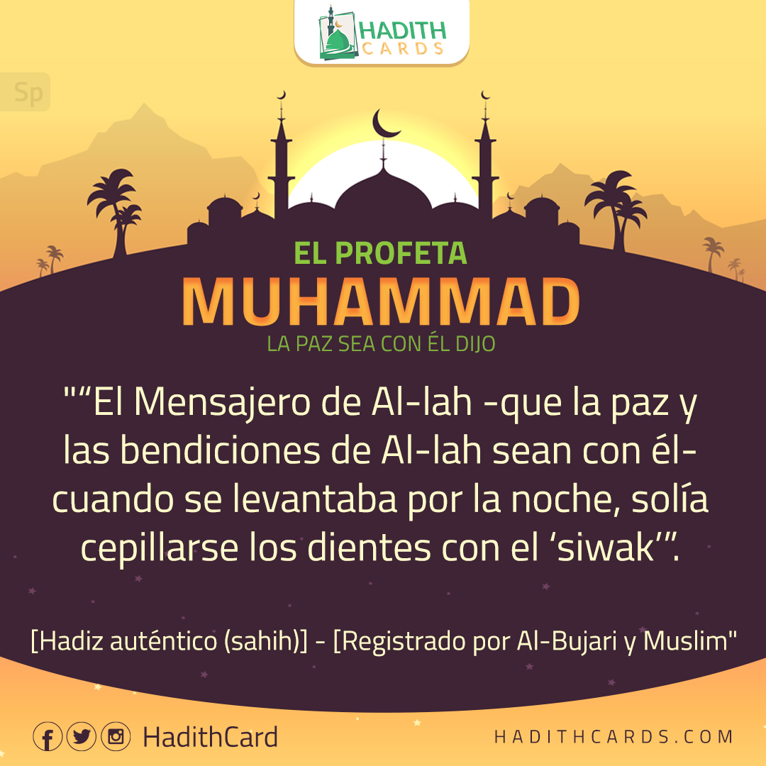 El Mensajero de Al-lah -que la paz y las bendiciones de Al-lah sean con él- cuando se levantaba por la noche, solía cepillarse los dientes con el ‘siwak