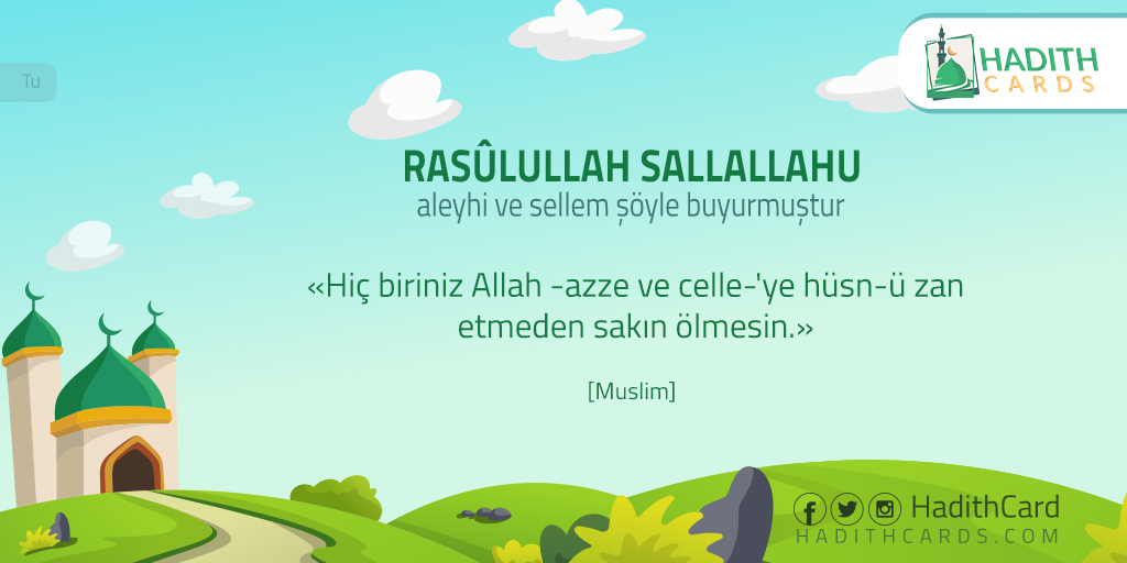 "«لا يَمُوتَنَّ أحدُكم إلا وهو يُحسنُ الظَّنَّ بالله -عز وجل-». [رواه مسلم.]"